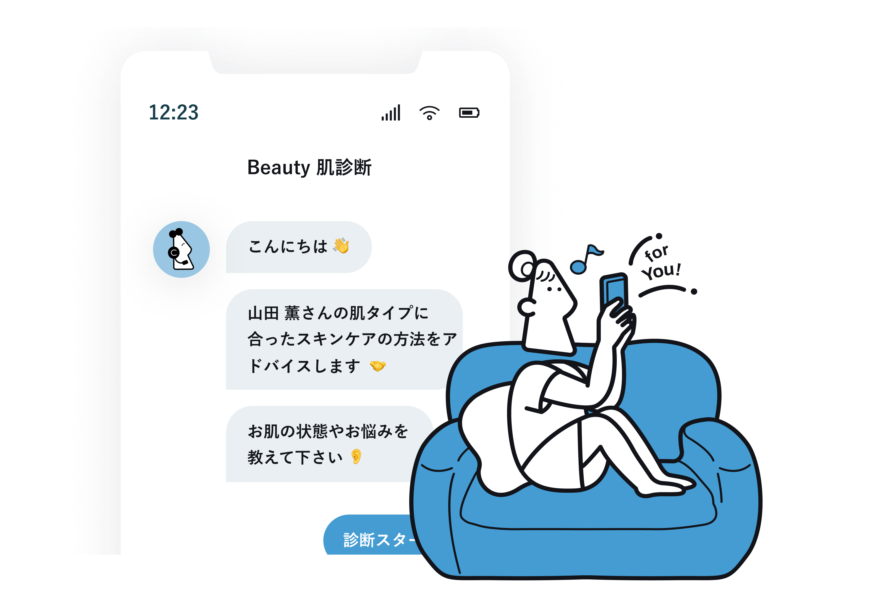 - 「売るノウハウ」と「診断ノウハウ」を掛け合わせたシナリオを制作します。 集客から獲得までの流れを把握し、クリエイティブやチャットデザインの細部に至るまで見込み客をファン化する最適なブランド体験をご提供します。