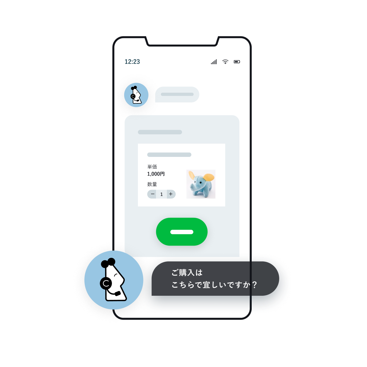 - LINEのLIFF機能を用いてBOTCHAN Paymentを呼び出すことで、LINEトーク画面内にて、会話形式でシームレスにクレジットカードや郵送先情報を入力し決済完了することが可能です。